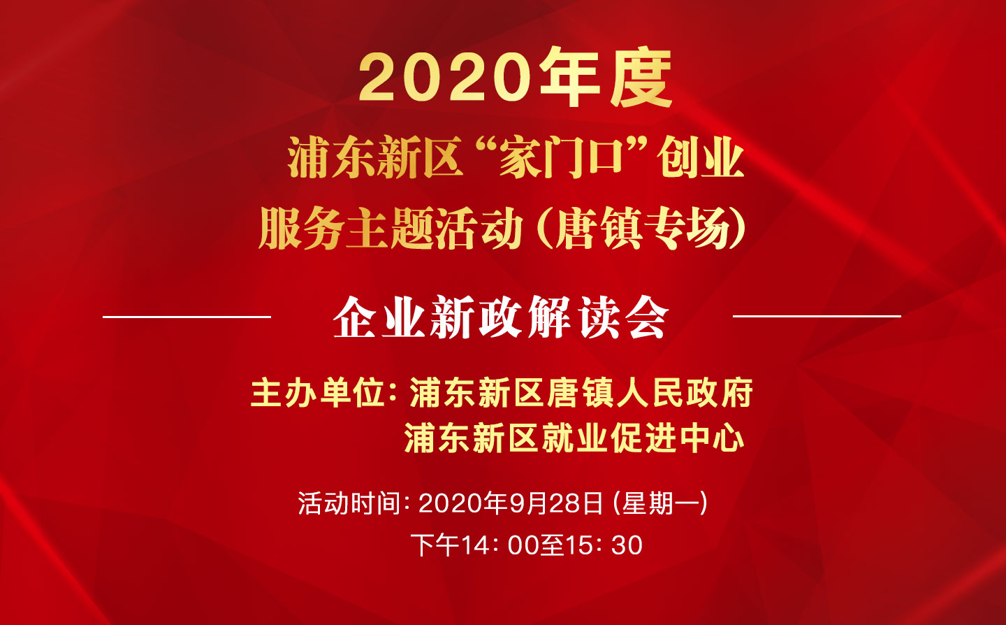 活动丨2020年浦东新区“家门口”创业服务主题活动(唐镇专场)