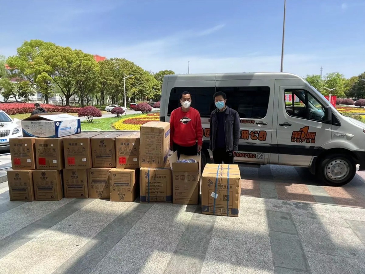 第一际张江联合共享办公招商办董事长在唐镇商会群获知部分地区防疫物资紧缺后,急忙连夜与防护供应商联系采购了1000套防护五件套和一些消毒液。在物资到位后,,卸车、查验、消毒、搬运后急忙联系唐镇政府,由公司董事长带领着公司志愿者马不停蹄前往捐赠,及时缓解了部分社区单位对防护物资的暂时紧缺。